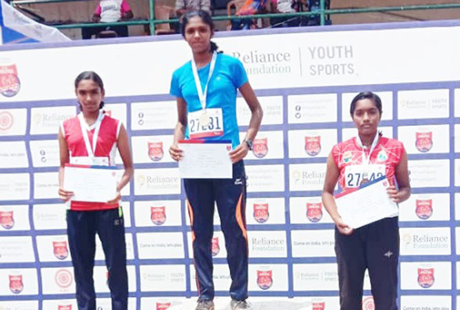 At the Reliance South Zone Meet, Keerthana of Std XF won the gold medal in the high jump and long jump. She also won the silver medal in 100m hurdles in the sub junior category.