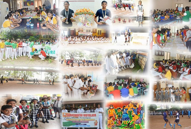 1. Cleaning the classrooms and school campus was one of the continuing activities in the cleanliness drive. This activity was extended to the areas surrounding the school campus. 2. Plogging on 2nd October, witnessed staff and students jogging up the distance to the main junction and picking up litter on the way. 3. The need for keeping the environment clean was emphasized by organizing Hand Wash Day. 4. Trees were planted in the school and saplings were distributed among students. 5. An organic vegetable garden is being tended to by staff and students. 6. A poster competition was conducted to create awareness of the message of a clean environment. 7. Senior students mentored the children of the lower classes on the need to have a clean planet, this was conveyed through placards. 8. Segregation of biodegradable and non-biodegradable objects is explained to the students and bins with color codes are placed in vantage places to facilitate this. 9. One of the objectives of the program was Water Conservation. It was realized early that water was one of the main constituents of sustainability. A three-year plan for conserving water in school has been mooted and the blueprint is being prepared. 10. Over 95 students participated in the TERI Green Olympiad 2019. This exam was conducted to develop an awareness of students in conserving the environment and towards a more sustainable planet. 11. Wild Wisdom Quiz 2019 will be conducted in the month of October and 70 students have registered to participate in it. 12. To strengthen the physical capabilities of our students and to upskill their leadership qualities as well as to enhance their spirit of competition and fair play, the Physical Education Department of Saraswathi Vidyalaya encourages its students to participate in numerous intramural and extramural sports events and competitions. As a part of the internal tournaments the following matches are conducted- -Inter Class Football competition, -Inter-Department Football Competition, -Kho-Kho competition, -Cricket Matches, -March past competition, -Table Tennis Matches, -Chess Competition, -Athletics Meet. The numerous extramural events organized for the students are: -the Chins Cup- the inter-school football tournament, -Sahodaya Athletics Meet, -CBSE South Zone -Badminton Competition, -National Ranking Championship for Skating, -Reliance Athletic Meet, -Inter-School Swimming Competition.