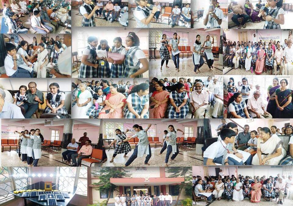 Students of Saraswathi Vidyalaya paid a visit to Shri MahaGanapathy Seva Graman, old age home, on 06/12/2019 as a part of NSS activity to spread joy in the festival season. In the time spent there, they interacted with the inmates over snacks and tea. Cultural programmes including song and dance were performed and solar lamps made by the students were handed over to the them.