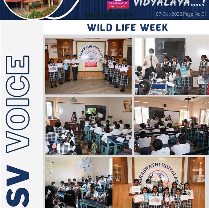 To encourage conservation and the preservation of animals, this years Wild Life Week was held under the theme “RECOVERING KEY SPECIES FOR ECOSYSTEM RESTORATION.” An awareness campaign for students was organized by ECO CLUB members at Saraswathi Vidyalaya to commemorate National Wild Life Week. Students held an interactive session and stressed the significance and relevance of conservation, protecting wild species, and sustainability using placards and pamphlets.