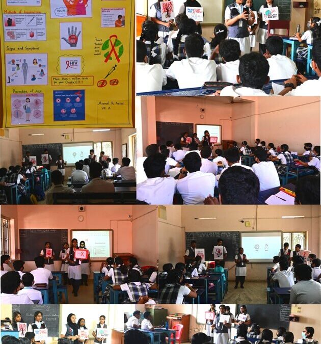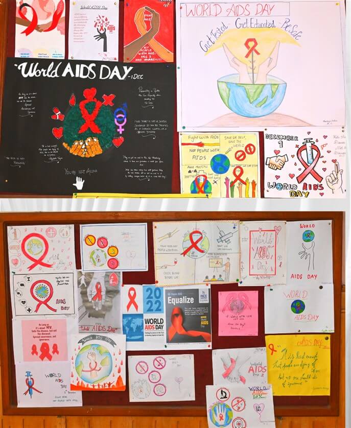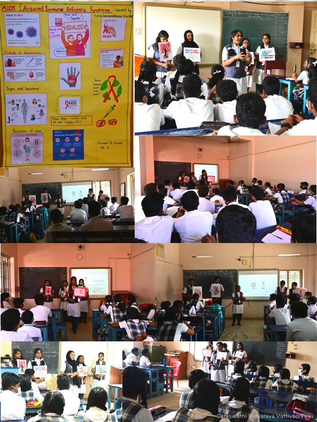 World AIDS Day is observed on 1st December every year. It is a day when we rededicate ourselves to providing awareness of AIDS, and to prevent its spread further. It is also a day when we also remember all those whom we have lost to the scourge. The theme for World AIDS day 2022 is Ending inequality and eliminating AIDS. To commemorate this day, Department of Biology, Saraswathi Vidyalaya conducted a special programme during the morning assembly. Remembering all those whom one lost and those who are still suffering ,Students of class XII carried banners and placards to sensitise students of lower grades not to discriminate those who are suffering from this disease.Students lit a candle and held it as a mark of respect. It was indeed a very moving sight when all stood together to commemorate a day which affects us all worldwide.