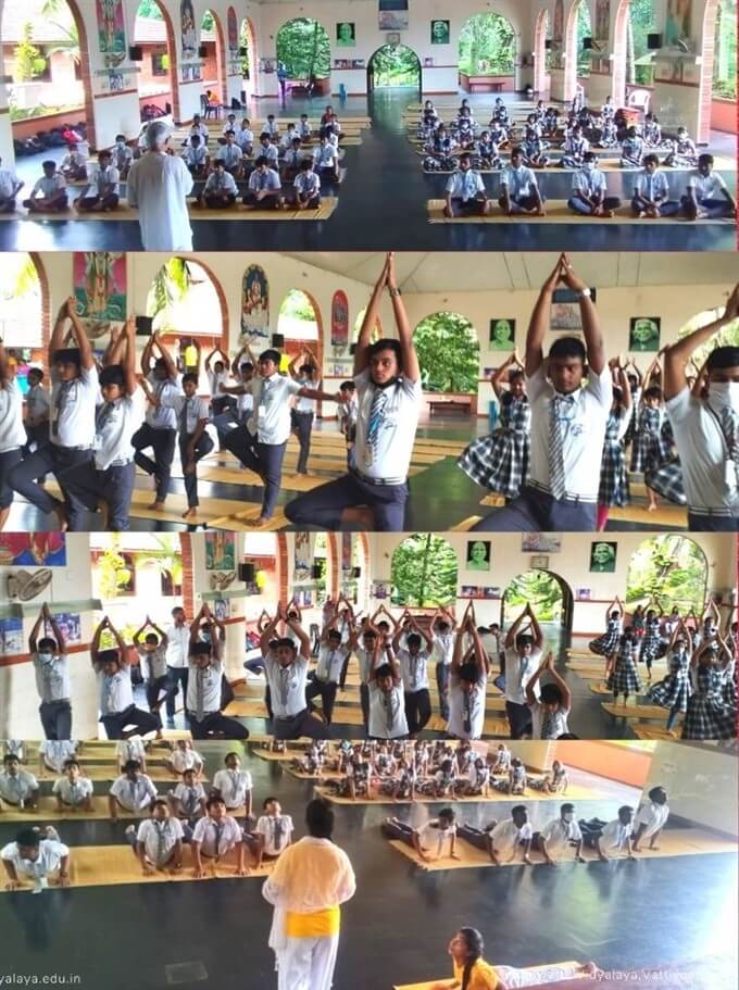 As part of Yoga Department activity, students were taken to Sivananda Ashram on 19.11.2022. Students were welcomed warmly and twelve asanas which would be beneficial in our daily lives was demonstrated and students too took part in it. The importance of “Satvik” food that was served to the students was explained. As part of Karma Yoga, students helped to clean the room in which they did the yoga services.